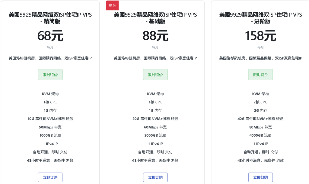 美国双ISP原生住宅IP 9929线路购买入口: