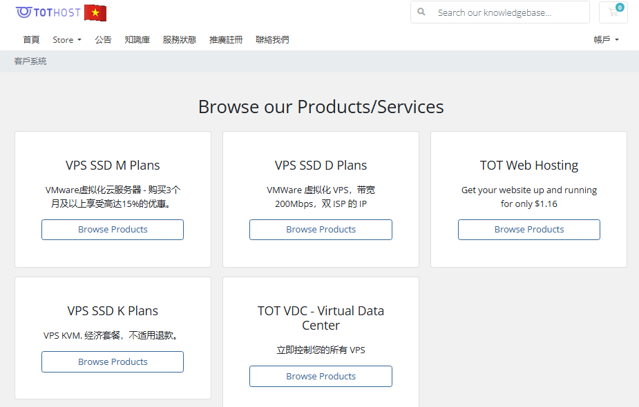 仅限: VPS TOT M (VMWare)、VPS TOT K (KVM)、 TOT VDC (Virtual Data Center) ,不包括 K Lite 套餐及 7 天套餐。