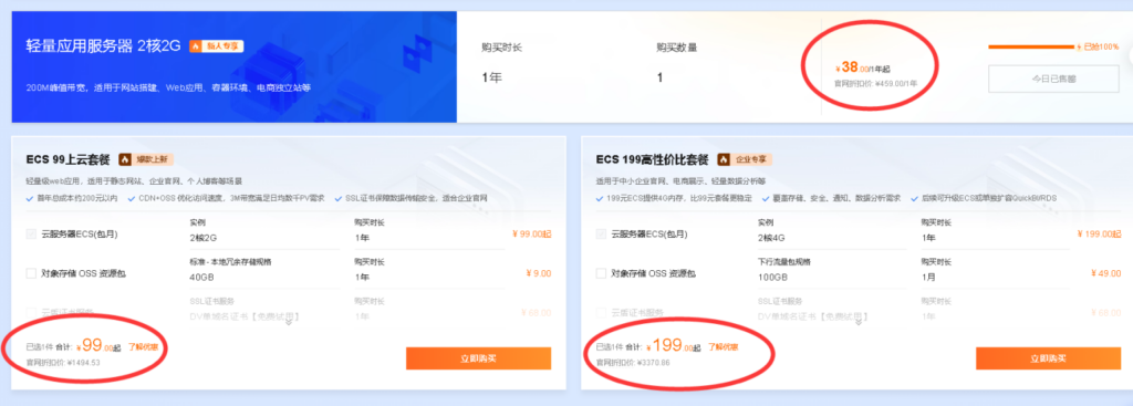 | 个人开发者 | 阿里云68元不限流量版 | 70-150元/年 | 点击直达阿里云 |