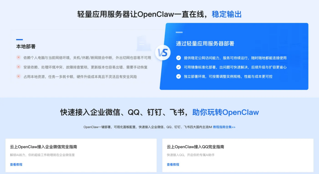 - 预置镜像简化流程:阿里云提前将OpenClaw运行所需的核心程序、依赖库、运行环境封装成专属镜像,用户无需手动处理依赖冲突;