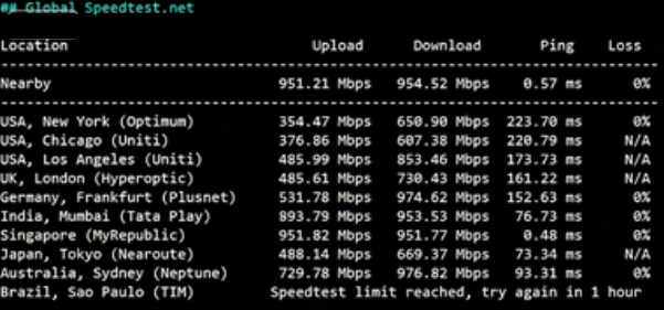 Speedtest测试全球上行和下行带宽速度: