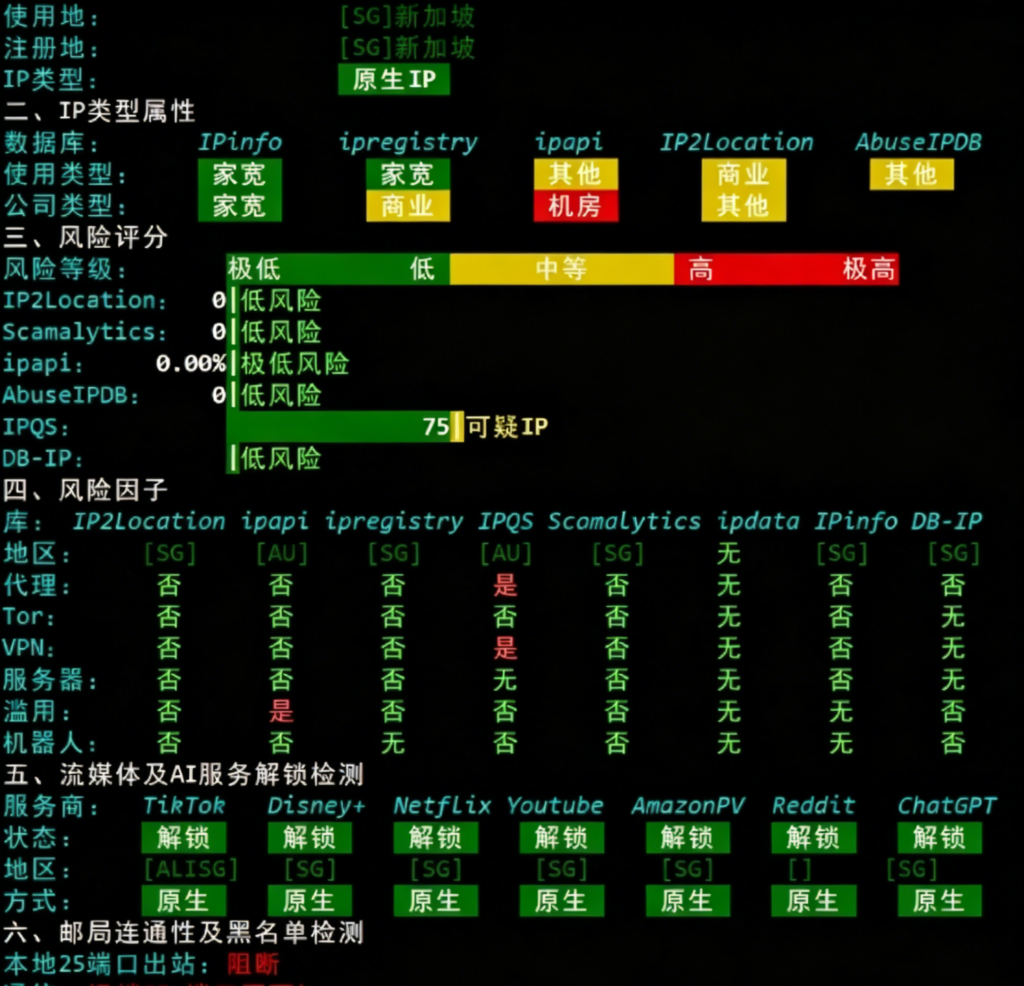IP质量检测报告,显示为原生属性: